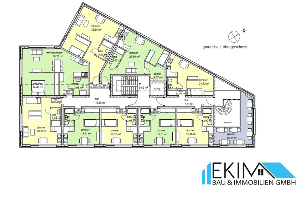 Wohnflächen zwischen 22 m2 und 48 m2 errichtet.
