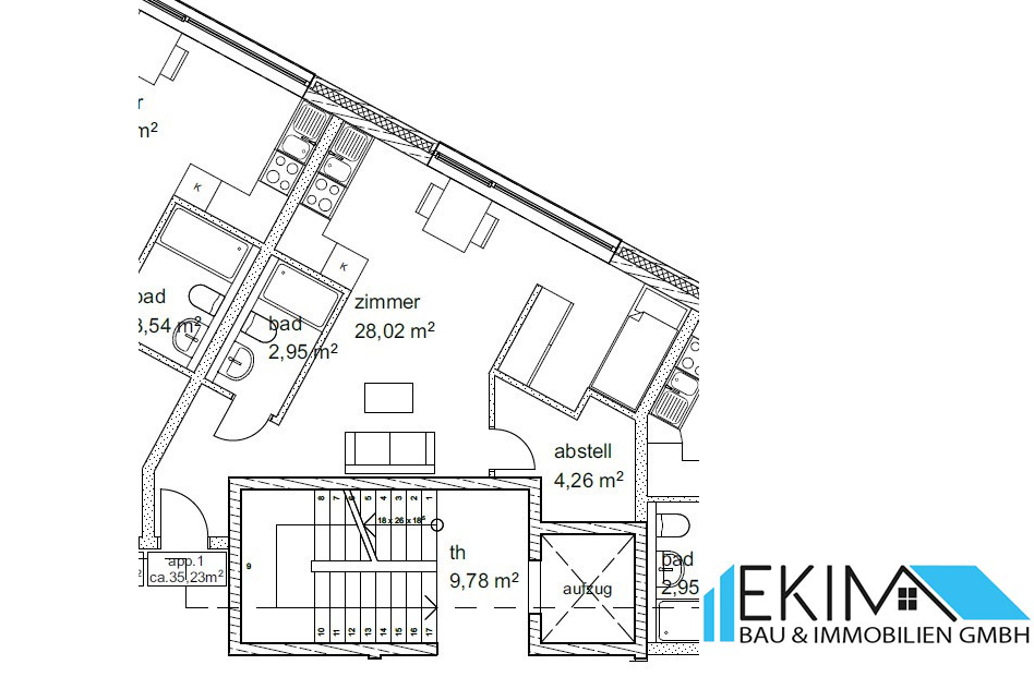 Bitte beachten Sie, dass für die Apartments im ersten und zweiten Obergeschoß eine